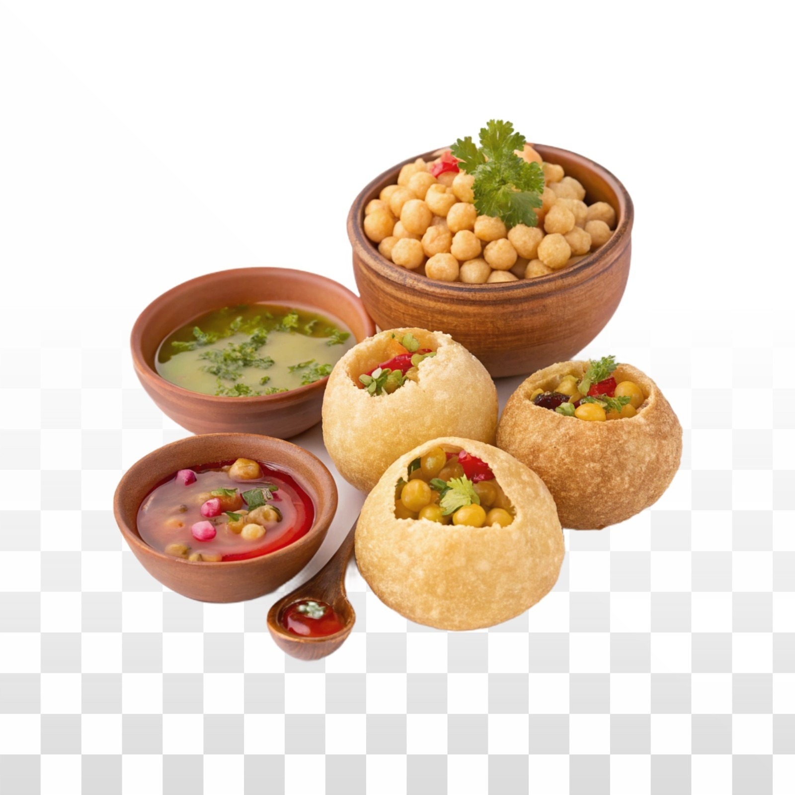 A popular Indian street food snack filled with spicy, tangy, and refreshing flavors.